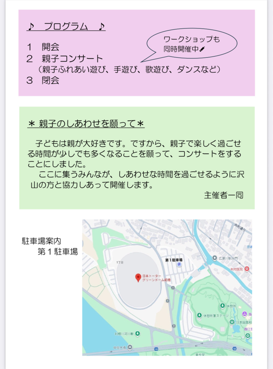 例年子育てセミナーを開催していましたが、今年は親子で楽しめるコンサートを開催することにしました。